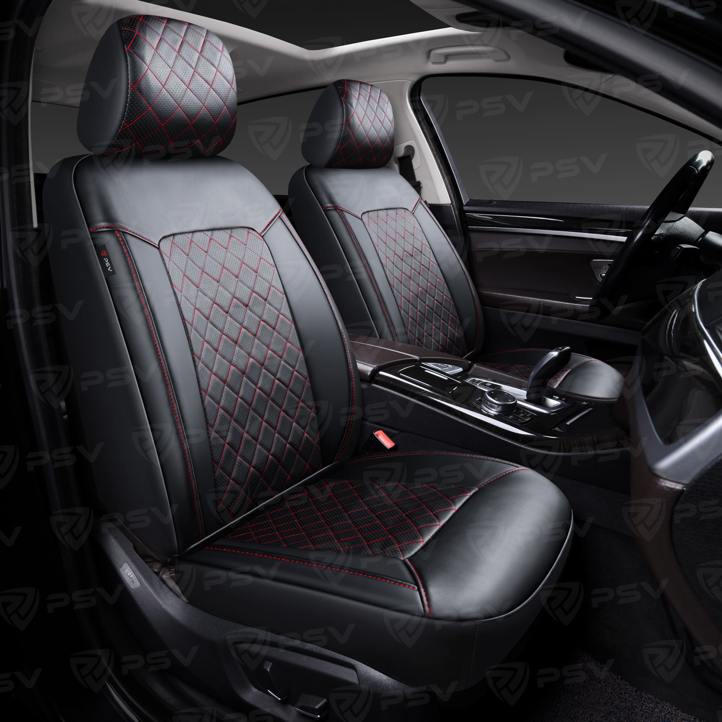 —Чехлы PSV Elegant Next 2 FRONT (Черный/Ромб красный/отстрочка красная), ромб + экокожа