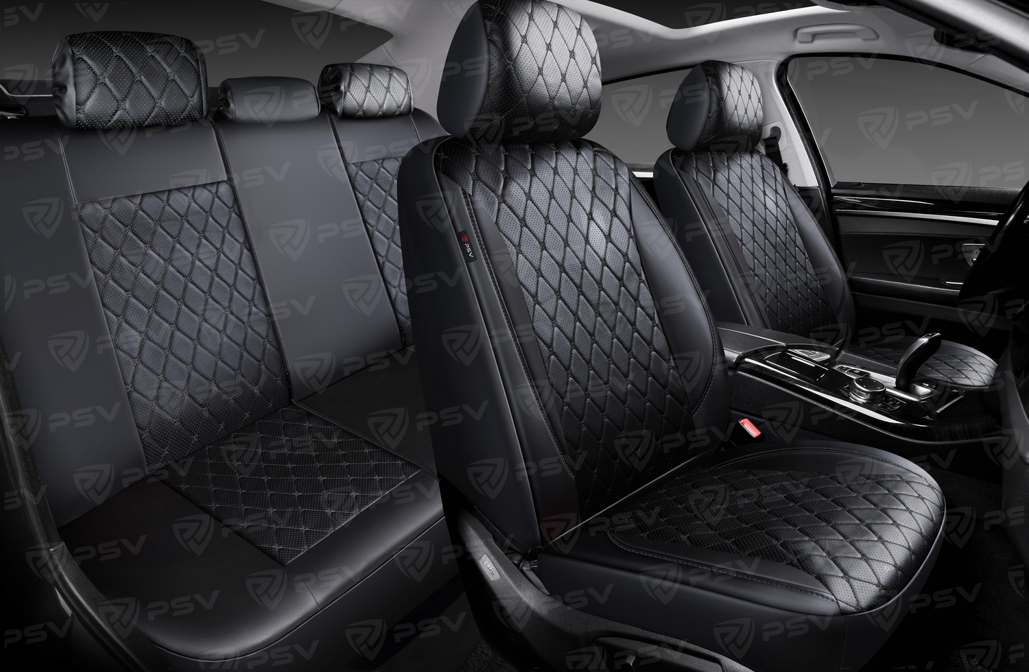 Чехлы PSV Graf Next (Черный/Ромб черный "Бабочка"/отстрочка черная), ромб + экокожа