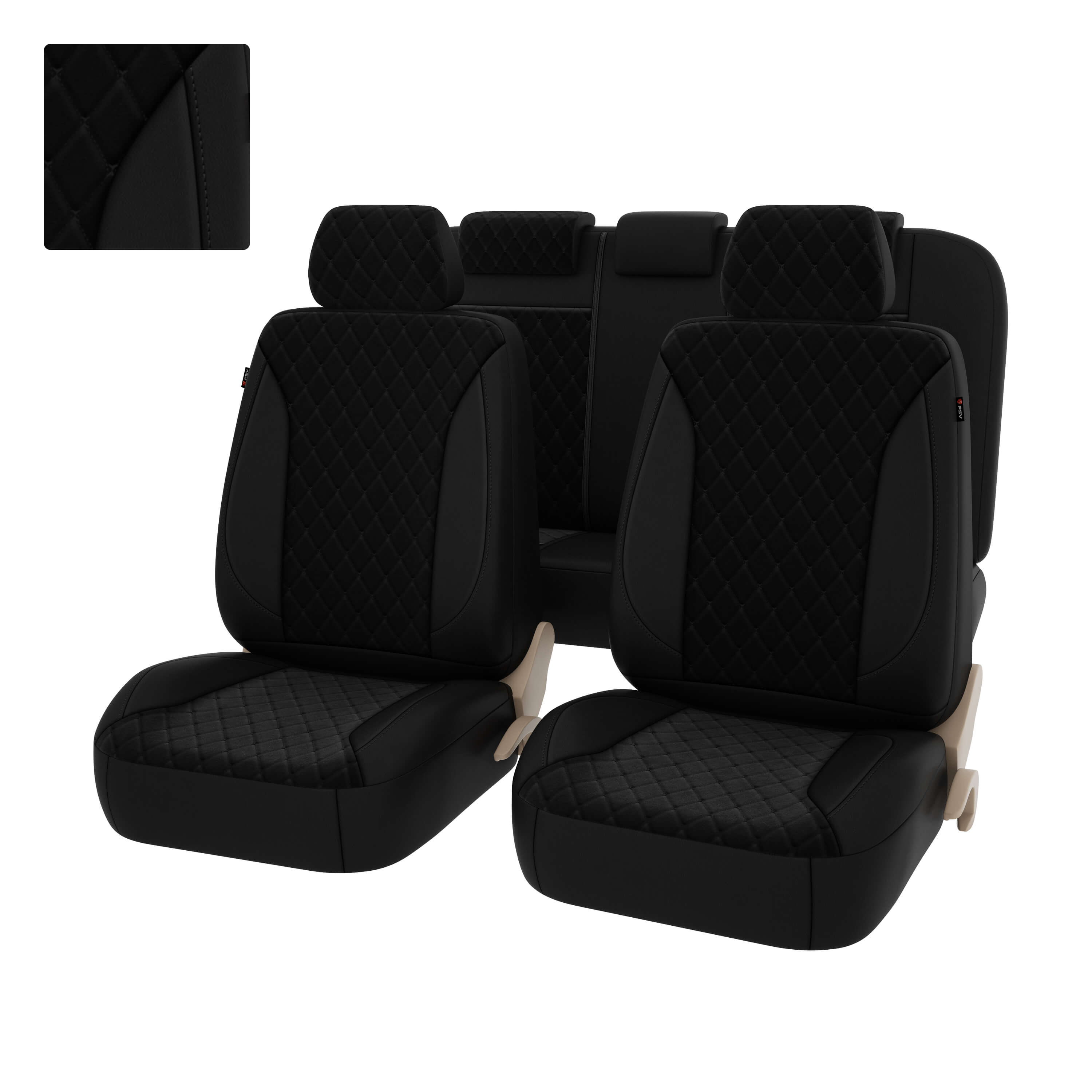 Чехлы PSV Graf Next (Черный/Ромб черный "Бабочка"/отстрочка черная), велюр + экокожа