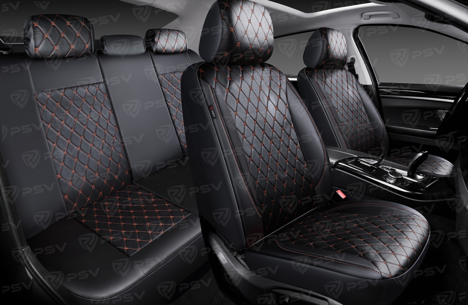 —Чехлы PSV Graf Next (Черный/Ромб коричневый "Бабочка"/отстрочка коричневая), ромб + экокожа