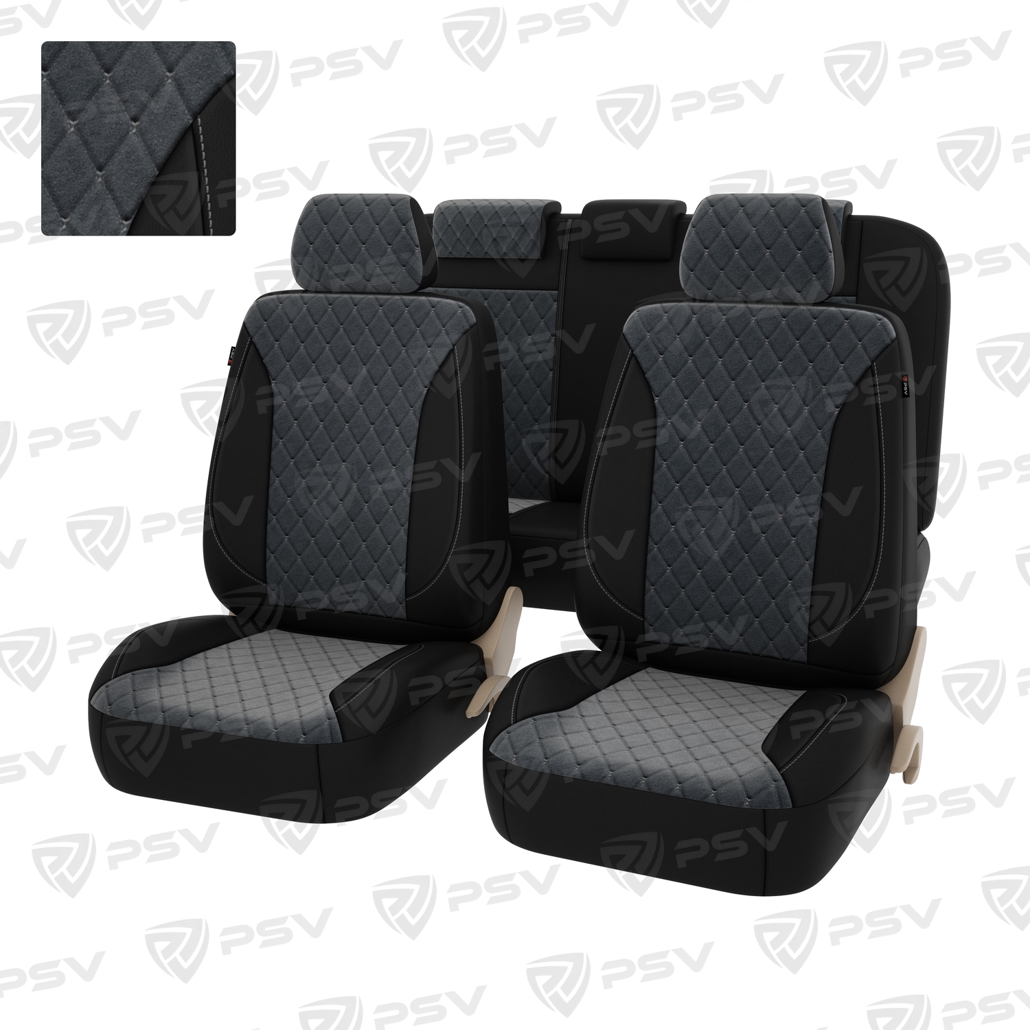 Чехлы PSV Graf Next  (Черный-Серый/Ромб Серый "Бабочка"), велюр + экокожа