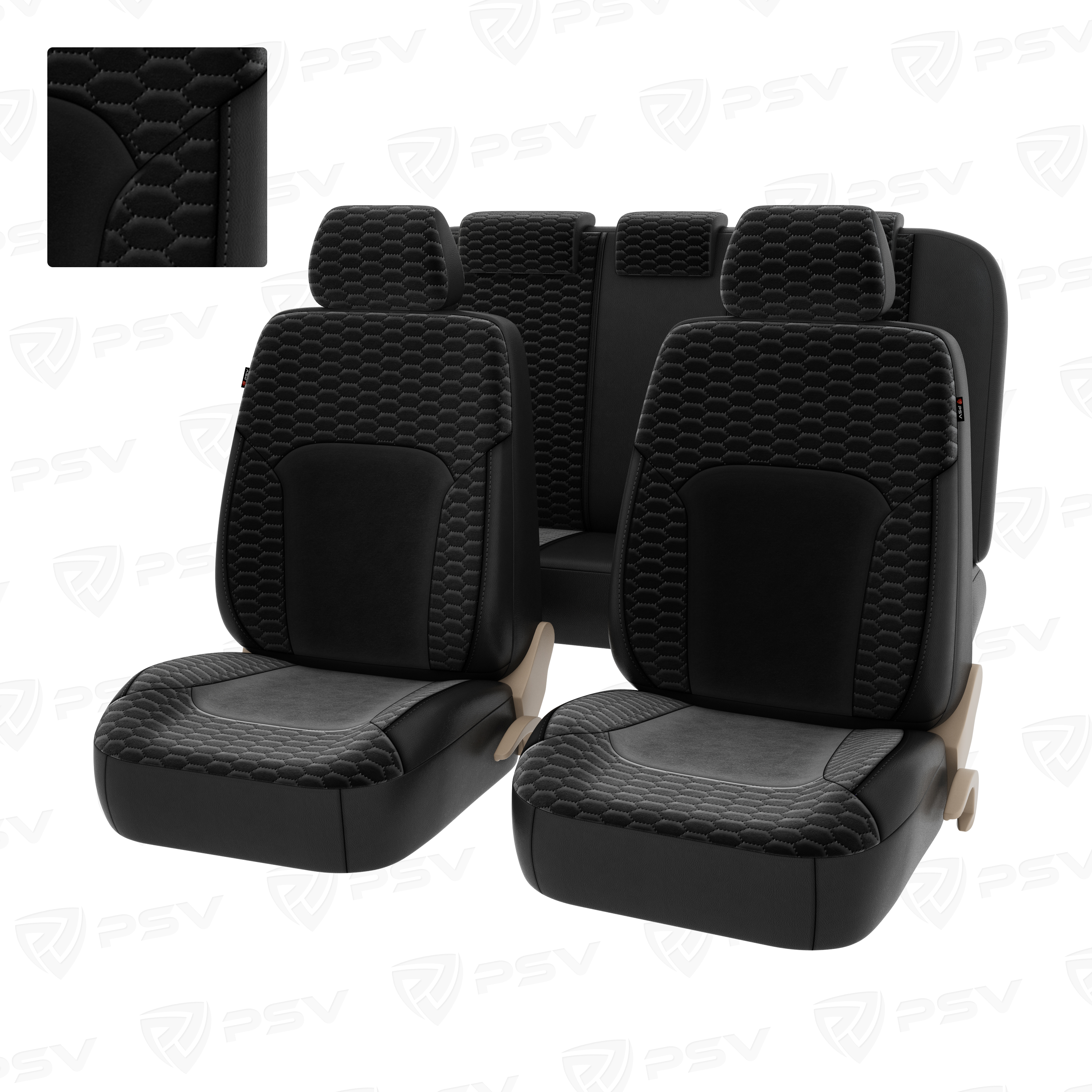 —Чехлы PSV Hornet Next (Черный/отстрочка черная), велюр терморомб "Сота" + экокожа