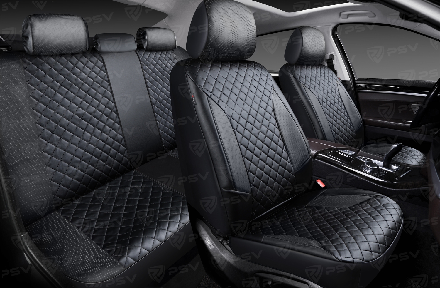 —Чехлы PSV King Next (Черный/отстрочка черная), терморомб + экокожа (ХИТ ПРОДАЖ)