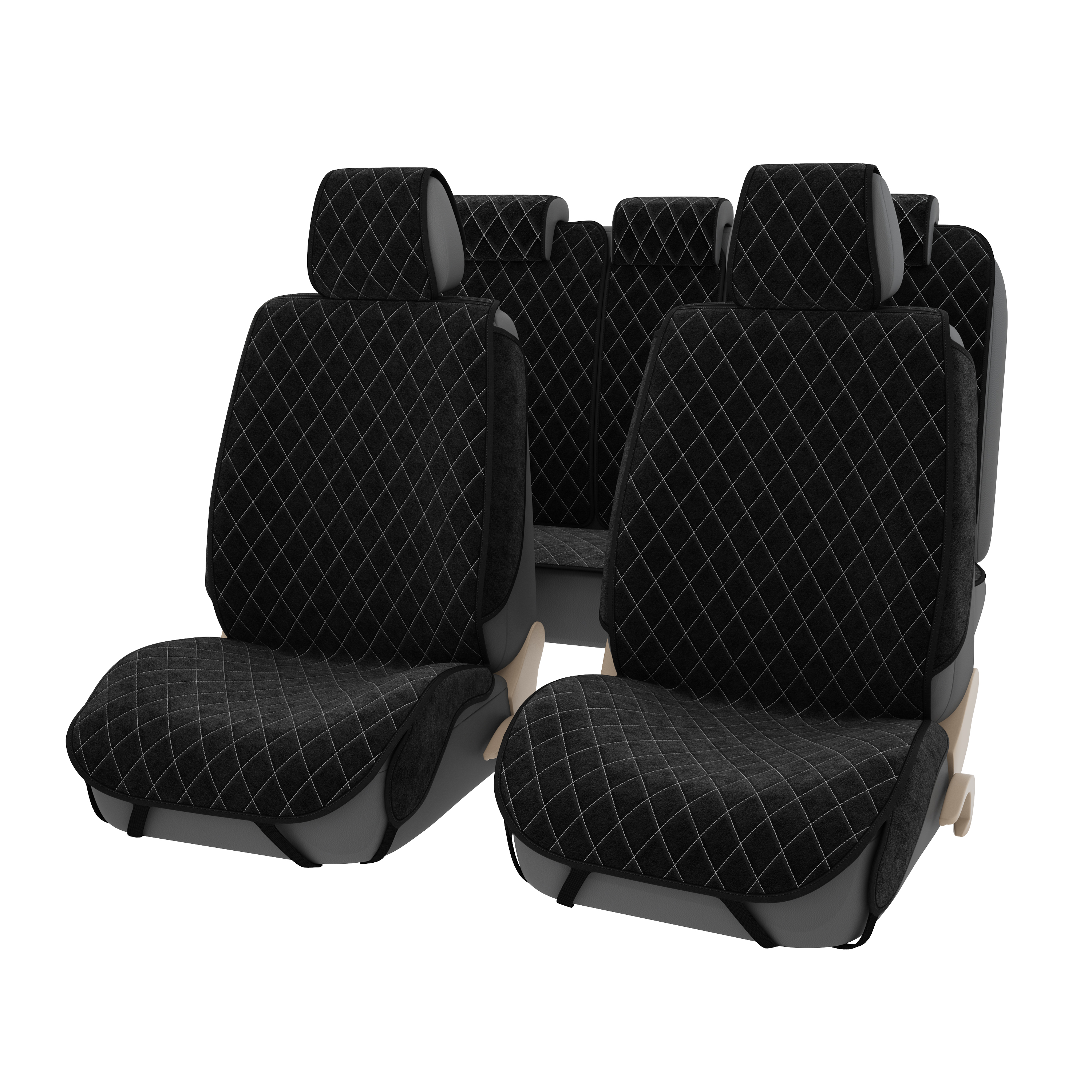 —Накидки 2D GTL Effect (Черный/Отстрочка белая), комплект на весь салон, велюр
