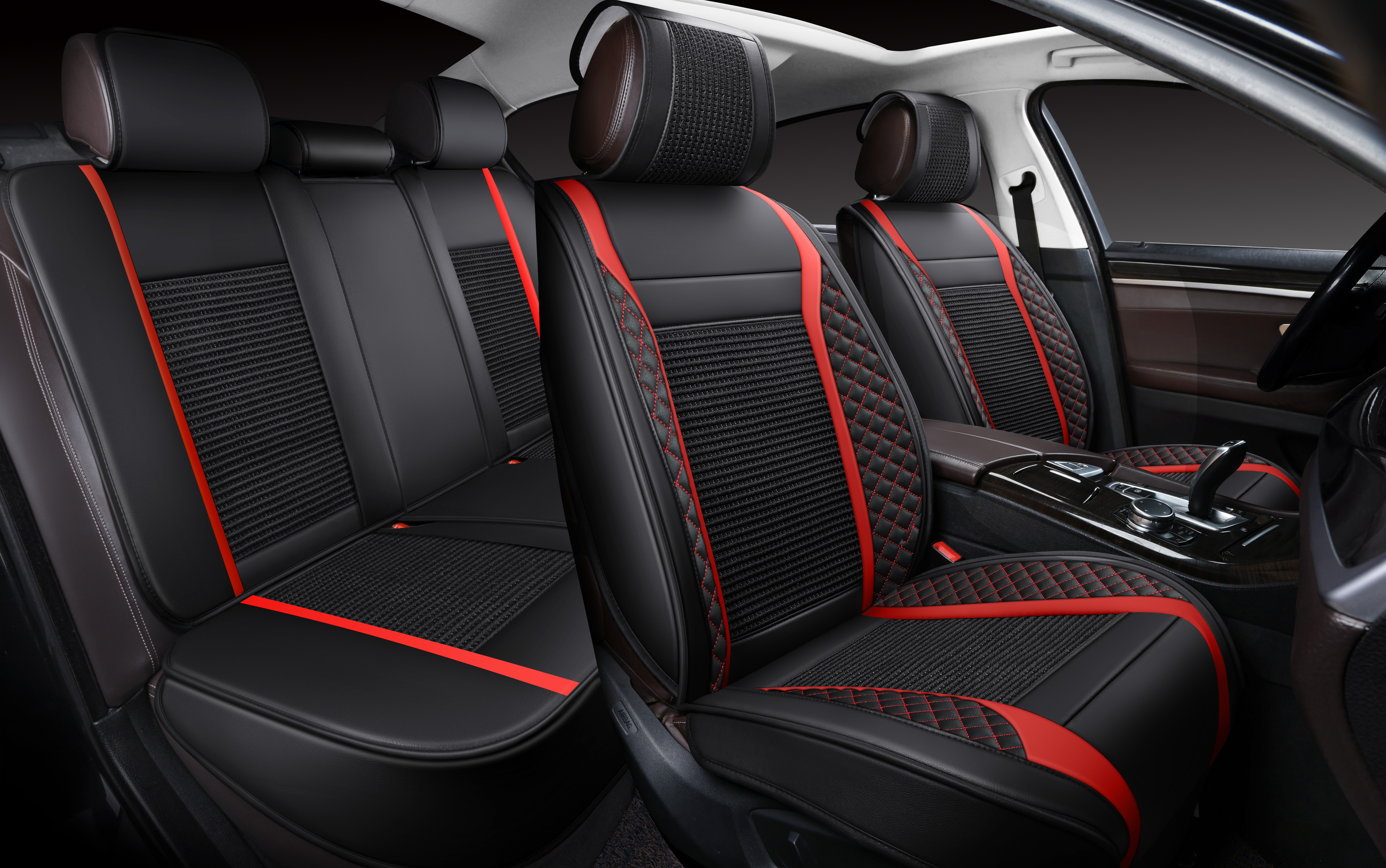 Накидки 3D PSV Expert (Черно-Красный), комплект на весь салон, экокожа + льняное плетение