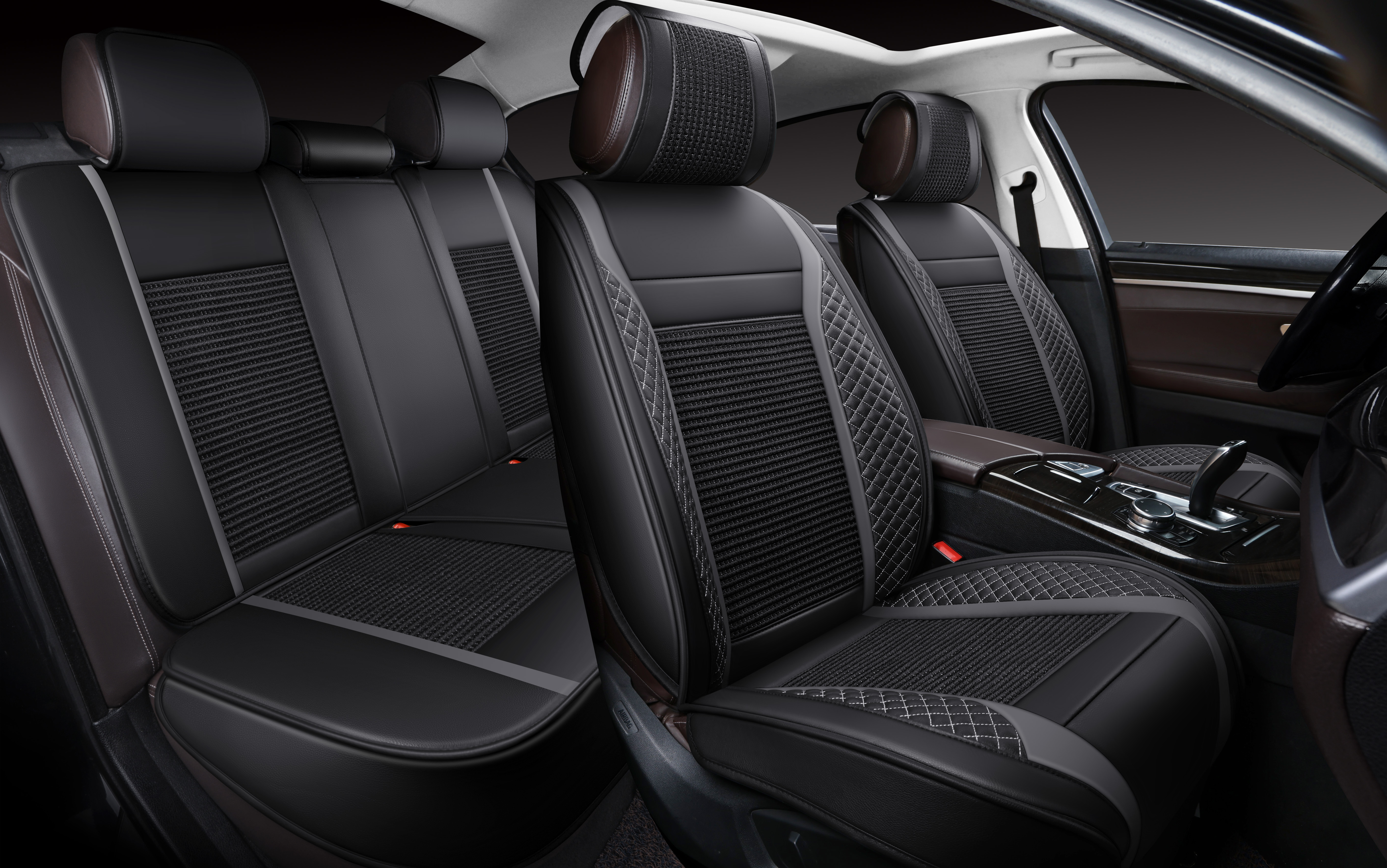 Накидки 3D PSV Expert (Черно-Серый), комплект на весь салон, экокожа + льняное плетение
