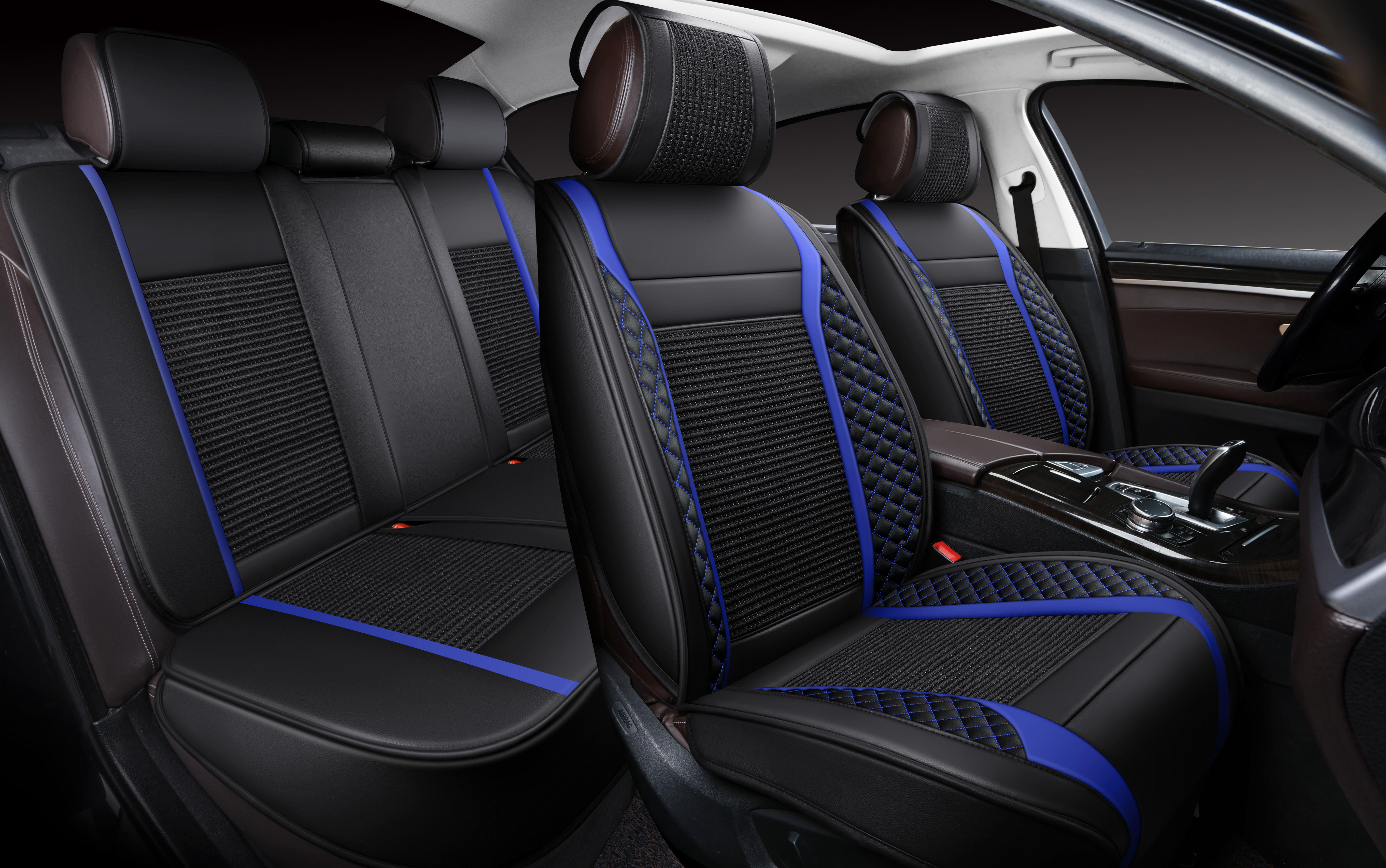 Накидки 3D PSV Expert (Черно-Синий), комплект на весь салон, экокожа + льняное плетение