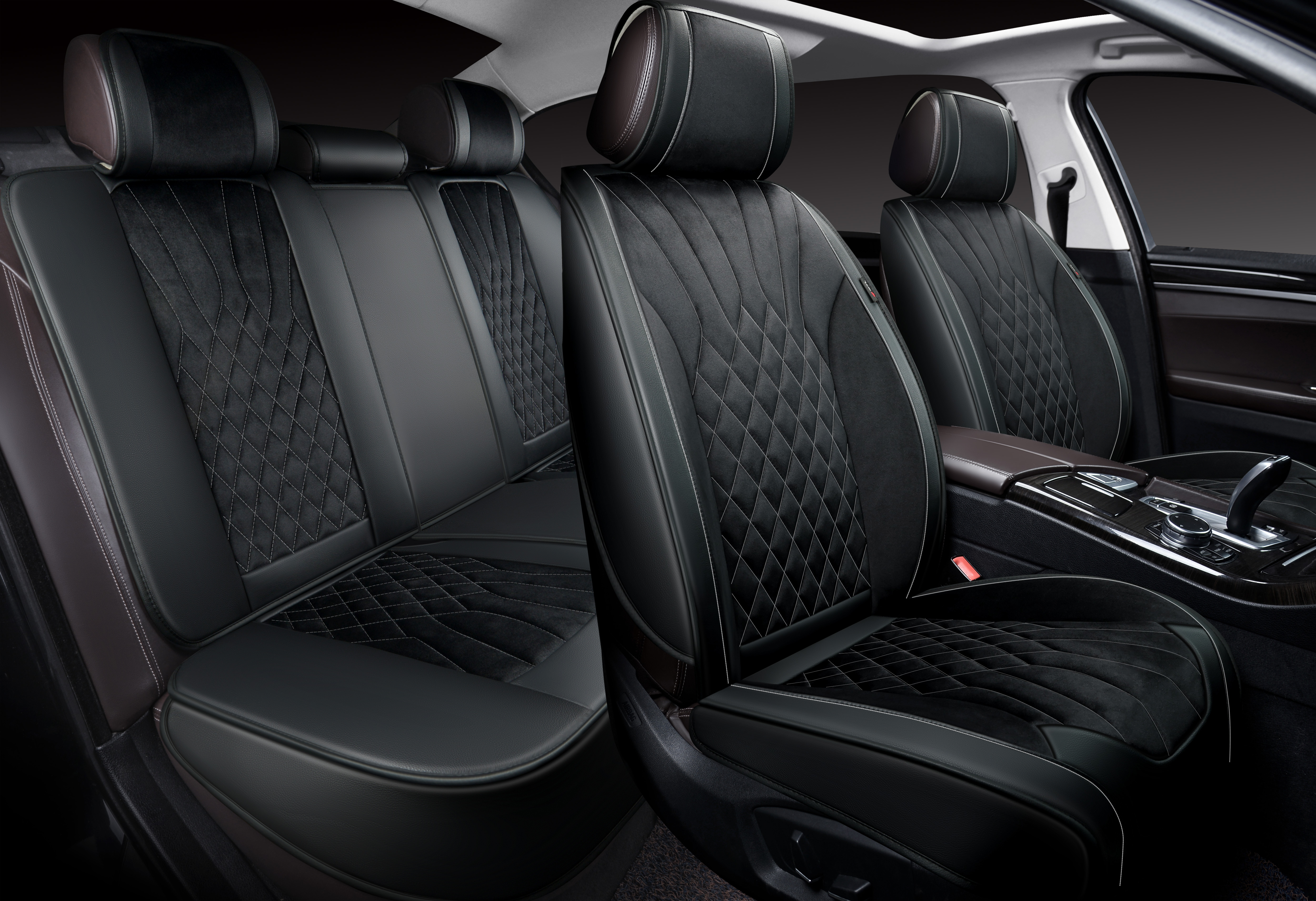 Накидки 3D PSV Galaxy (Черный/Отстрочка белая), комплект на весь салон, экокожа + велюр