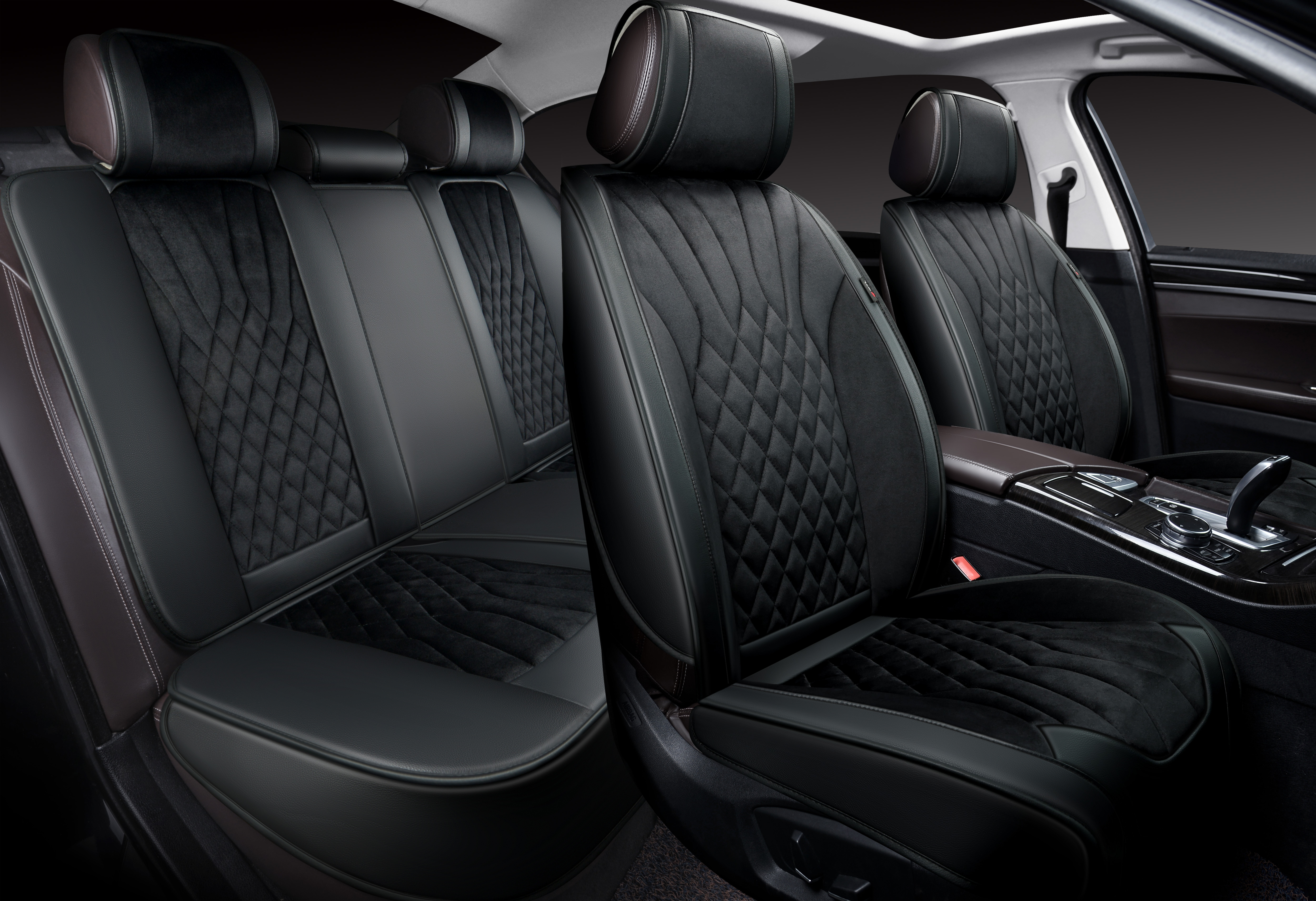 Накидки 3D PSV Galaxy (Черный/Отстрочка черная), комплект на весь салон, экокожа + велюр