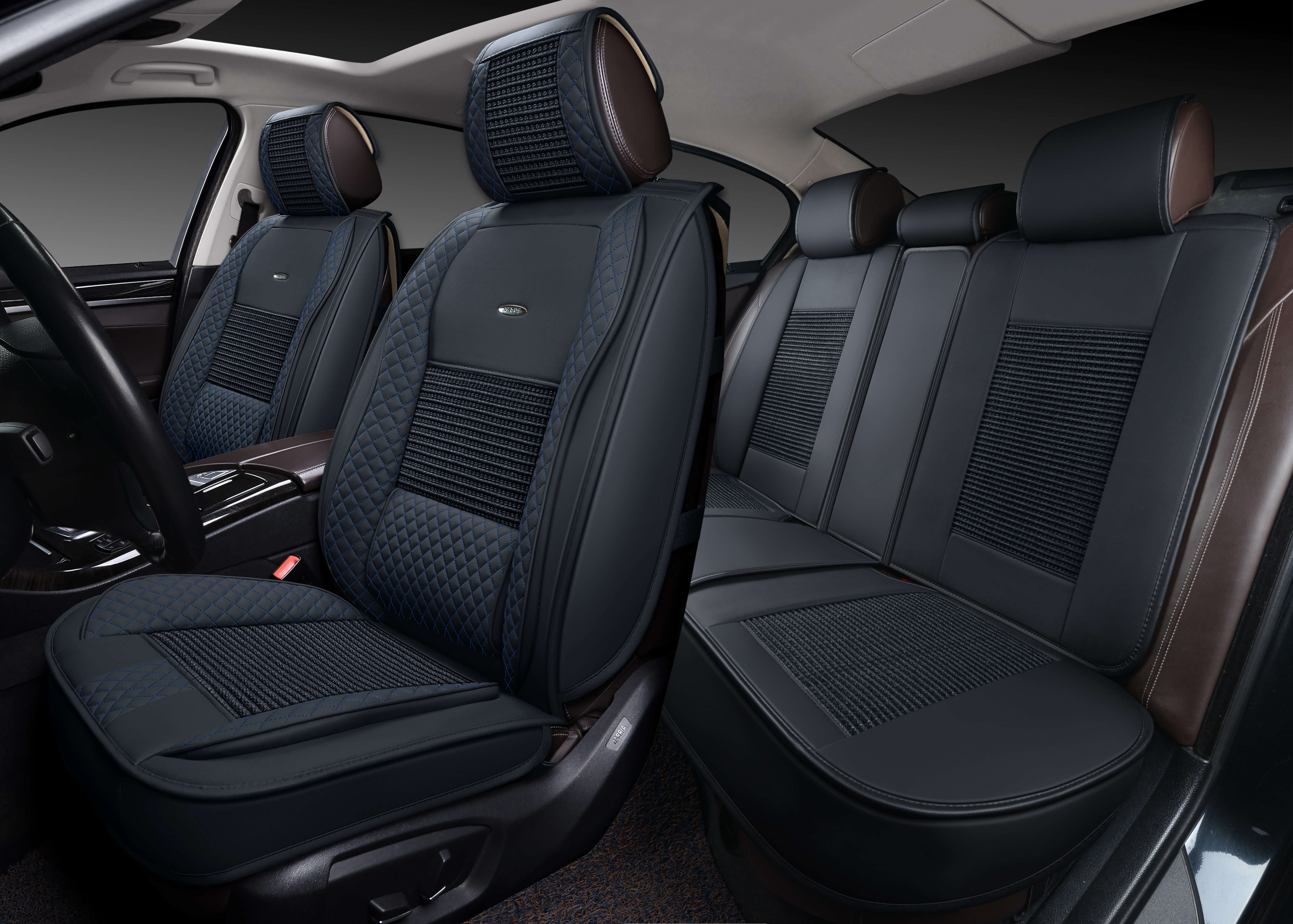 Накидки 3D PSV Lint (Черный/Отстрочка синяя), комплект на весь салон