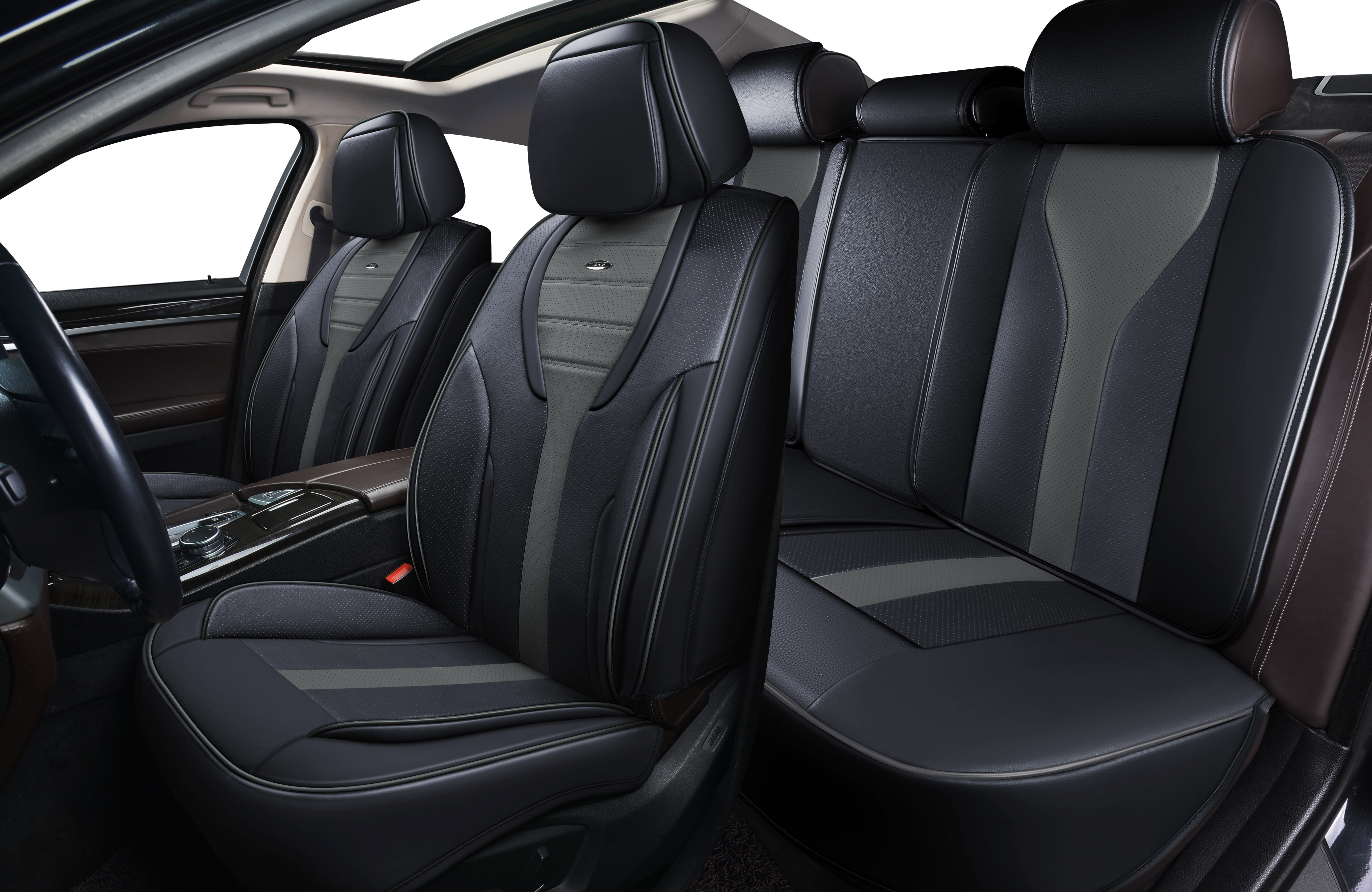 Накидки 5D PSV Novella (Черно-Т.Серый), комплект на весь салон, экокожа