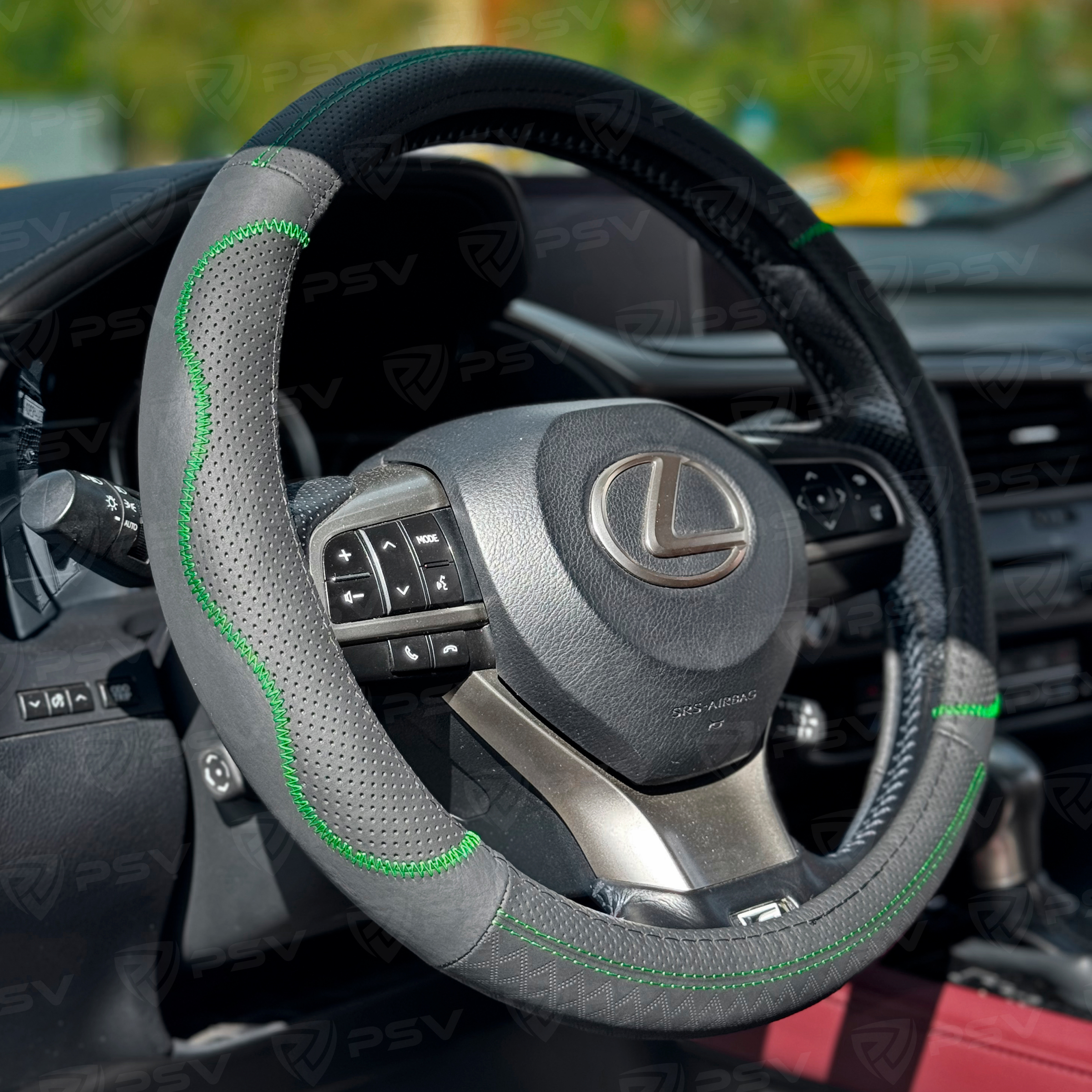 —Оплетка на руль кожаная PSV KORONA (Черный/Отстрочка зеленая) M, с перфорацией