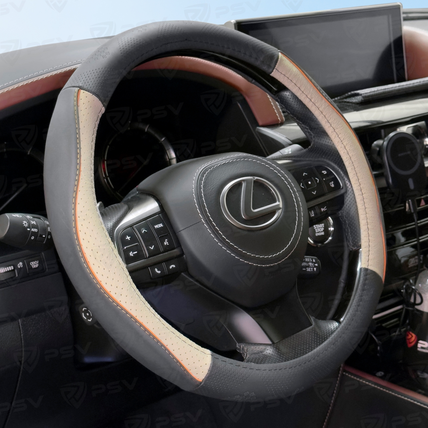—Оплетка на руль кожаная PSV MIX (Черно-серый/Кант оранжевый) M, с перфорацией