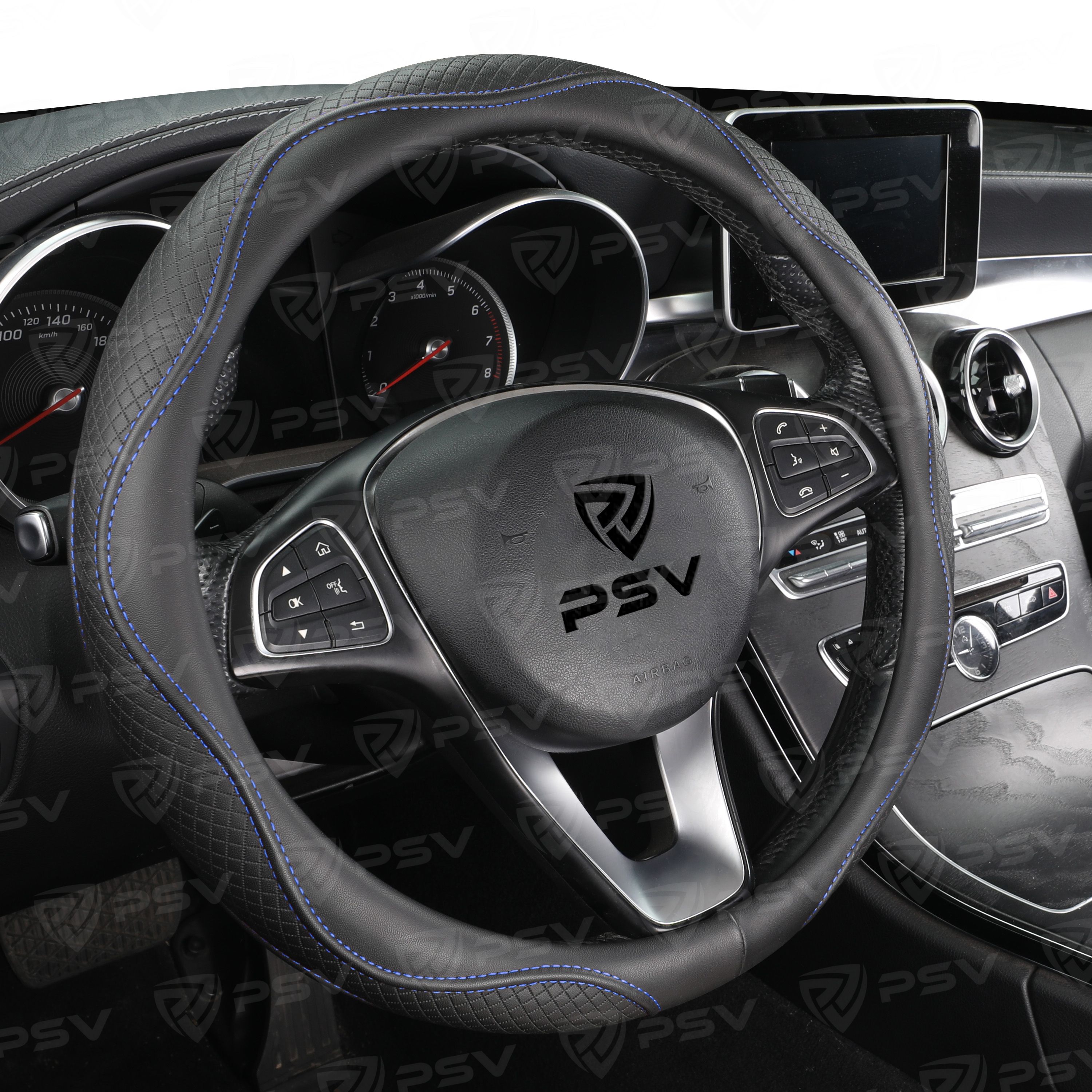 —Оплетка на руль PSV ILLUSION (Черный/Отстрочка синяя) M, экокожа