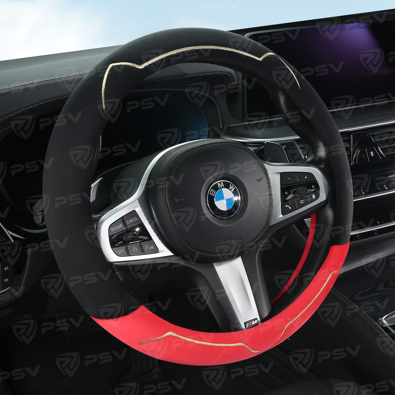 —Оплетка на руль PSV KISA (Черно-красный) M, вельвет