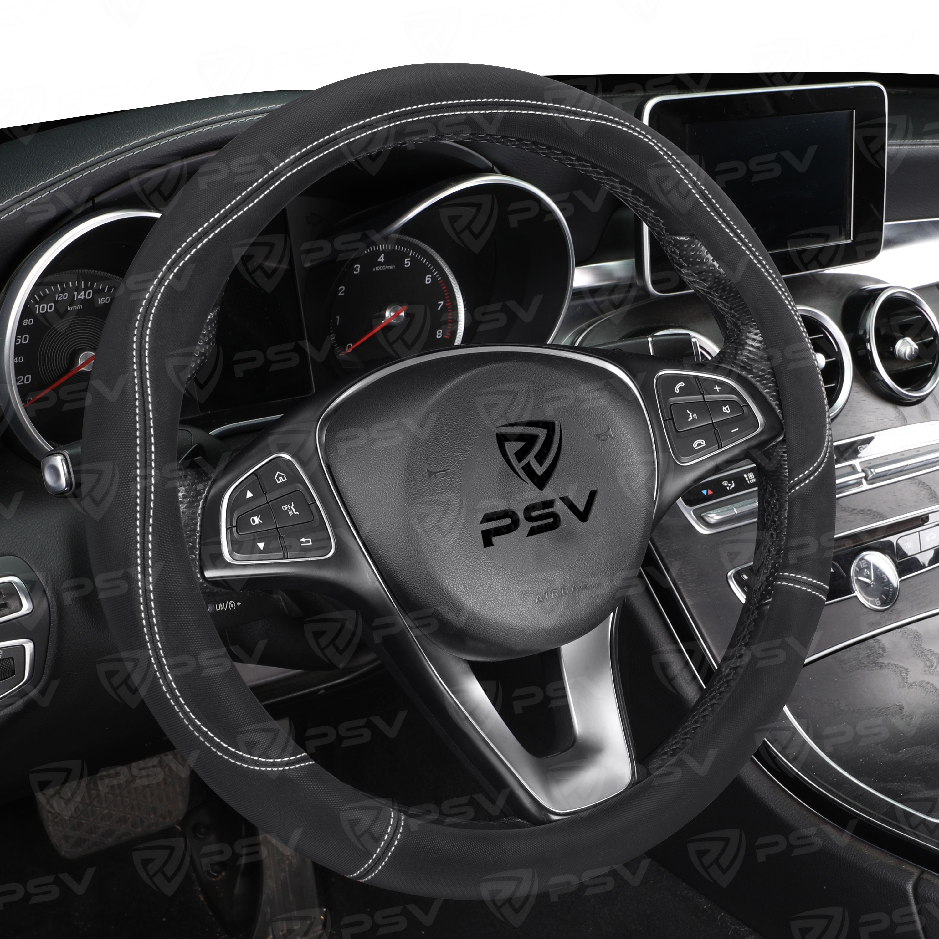 Оплетка на руль PSV KLANT (Черный/Отстрочка серая) M, экокожа