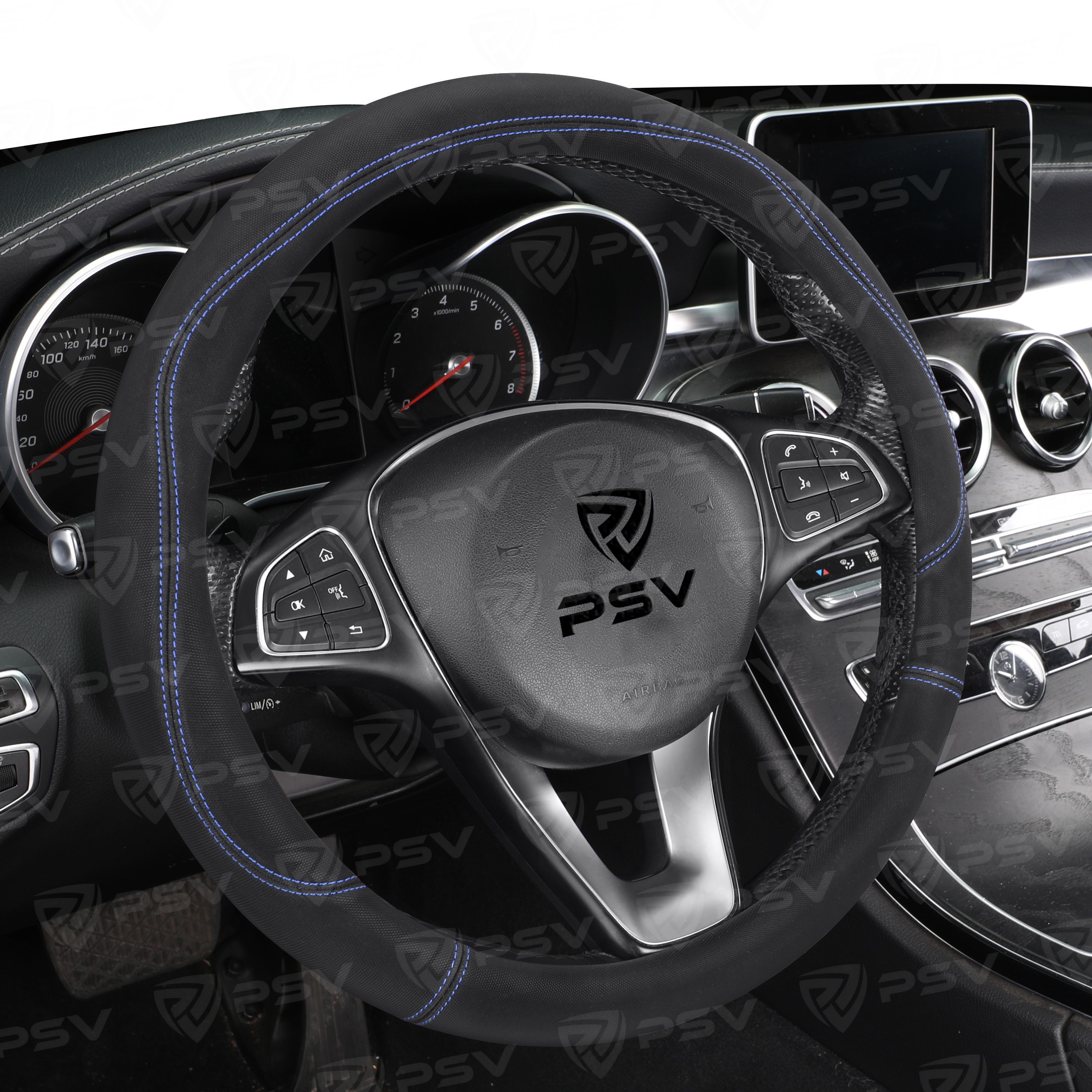 Оплетка на руль PSV KLANT (Черный/Отстрочка синяя) M, экокожа