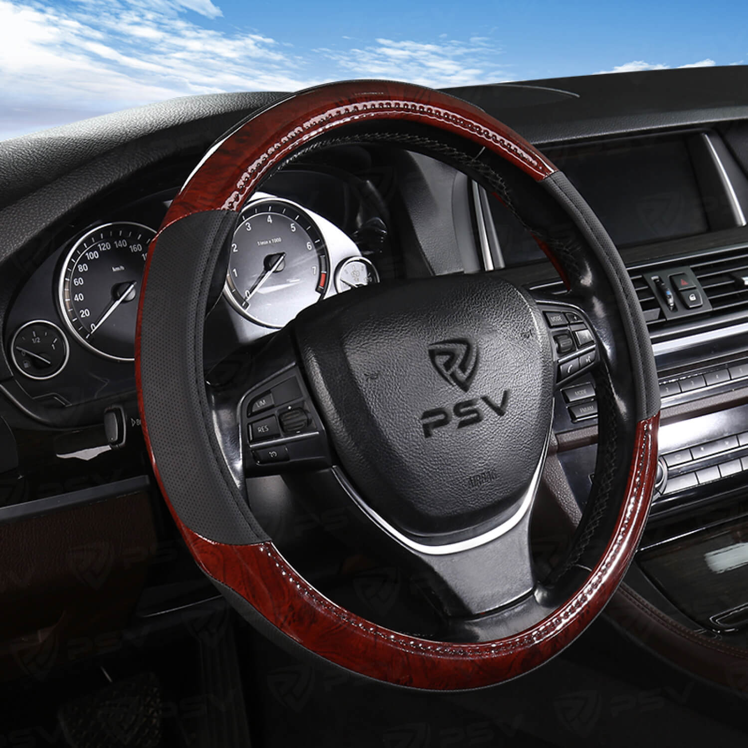 Оплетка на руль PSV WOOD (Черный) M, экокожа  (ХИТ ПРОДАЖ)