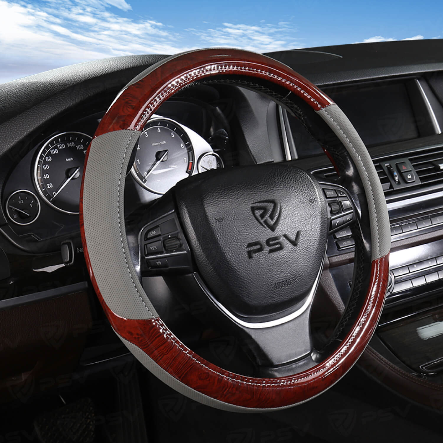—Оплетка на руль PSV WOOD (Серый) M, экокожа (ХИТ ПРОДАЖ)